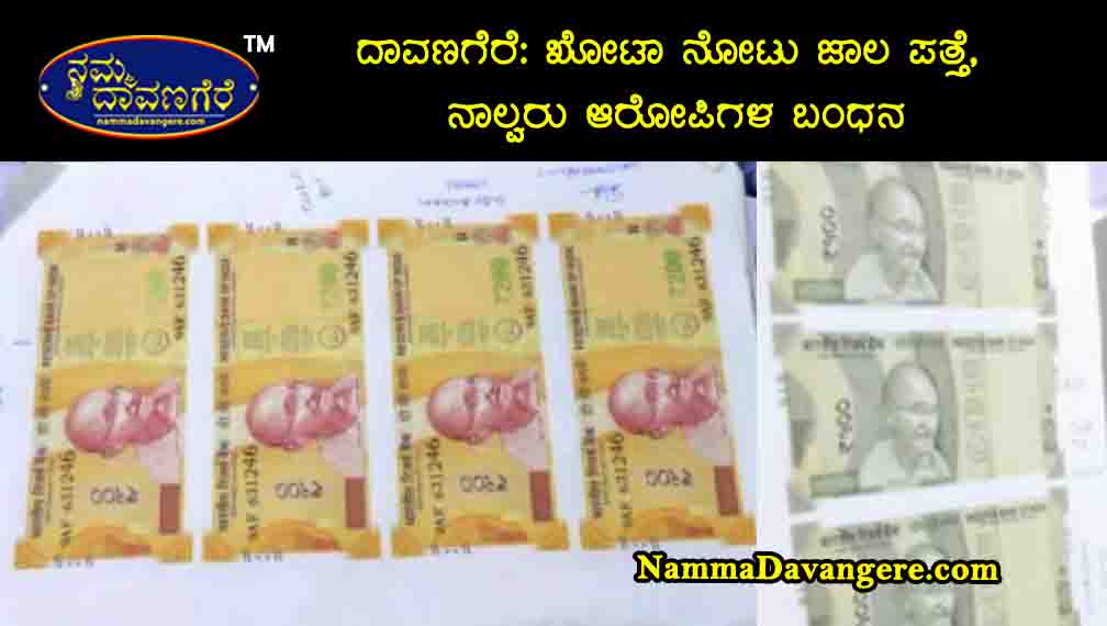 ಚನ್ನಗಿರಿ ತಾಲೂಕಿನ ಚಿರಡೋಣಿ ಗ್ರಾಮದಲ್ಲಿನ ಬಾರ್ ಅಂಡ್ ರೆಸ್ಟೋರೆಂಟ್ ಎದುರು ಇಬ್ಬರು ಖೋಟಾ ನೋಟು ಚಲಾವಣೆ ಮಾಡುತ್ತಿದ್ದರೆಂದು ಖಚಿತ ಮಾಹಿತಿ ಪಡೆದ ಬಸವಾಪಟ್ಟಣ ಠಾಣೆ ಪೊಲೀಸರು ಜುಲೈ 19ರ ಶನಿವಾರ ದಾಳಿ ನಡೆಸಿ, ಸಂತೋಷಕುಮಾರ್ ಮತ್ತು ವಿರೇಶ್ ಬಿ.ಪಿಯನ್ನು ಬಂಧಿಸಿದ್ದಾರೆ.